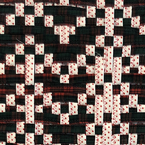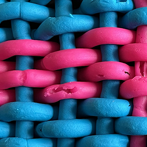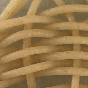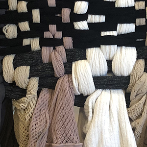 While sheltering in COVID-induced isolation during spring 2020, I demonstrated to my students that weaving can happen anywhere and with anything by creating and documenting temporary installations throughout my home, using the obvious choices of fabric and yarn, but also things like spaghetti and toilet paper. Weaving—a process that hadn’t been a regular part of my own studio practice in twenty years—became both creatively fulfilling and pedagogically functional. In the time since, I have continued to reconsider weaving as research, process, and ephemeral installation, rather than as permanent product. I think about weaving as an experience, an experiment, and a new way to deeply understand the world around me.