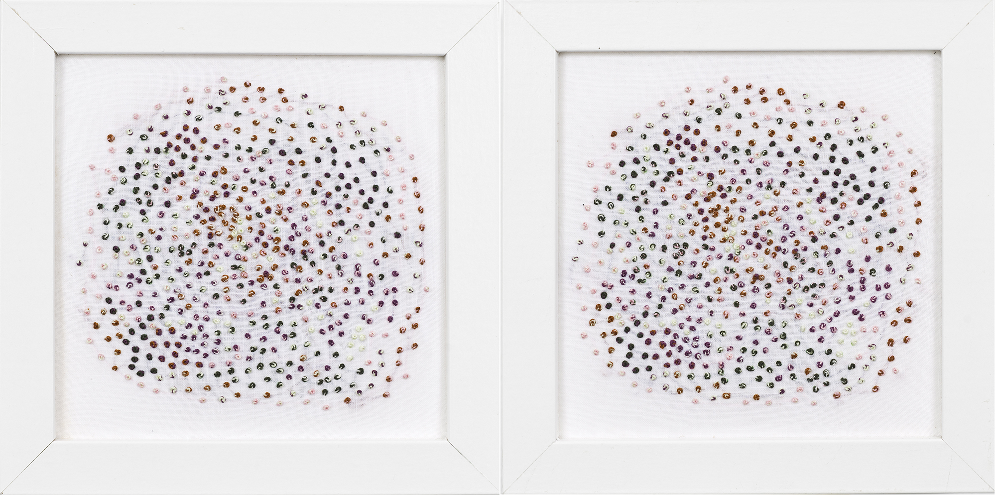 L: Five Hundred French Knots, R: Five Hundred French Knots by The Assistant, 2010, 5″ x 5″ each