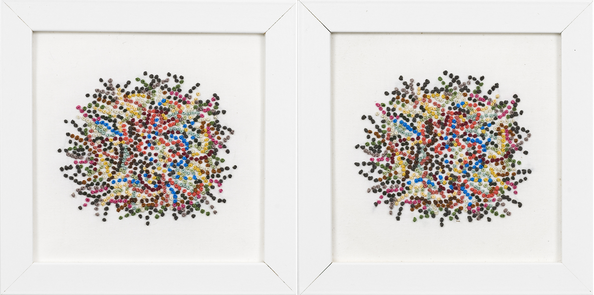 L: Nine Hundred French Knots, R: Nine Hundred French Knots by The Assistant, 2010, 5″ x 5″ each