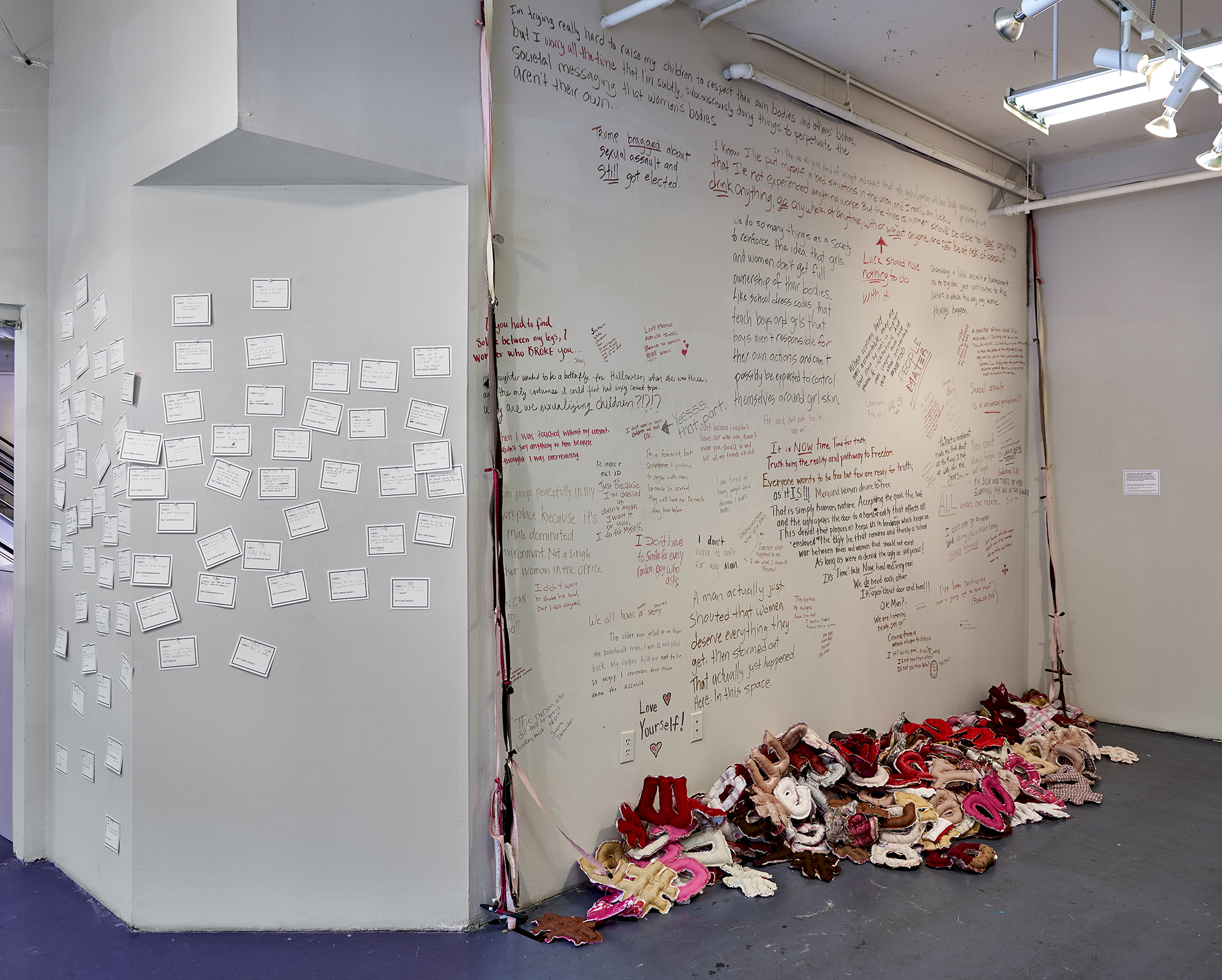 #unfriendmeifyoustillsupporthim installation view, including I Feel So Lucky… and Recent Activity – Raleigh, 2018, Artspace, Raleigh, North Carolina
