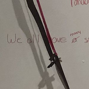 Collectively, these works are about social media: its effectiveness(-less) as an agent for change, as an archive of a particular moment in history, and as a magnifier of personal inadequacies. When life is mediated through social media, it is flattened and hyper-simplified. Every shared activity is met with the same limited menu of responses. Navigating others’ experiences is an emotional roller-coaster. How can I flit from loving baby pictures to angry- facing Trump’s latest inhumane cruelty? How many hashtags add up to actual change?